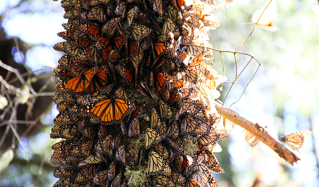 在Monarch Butterfly Biosphere Reserve树上过冬的帝王蝶,鸣谢Alternare A.C.提供相片。